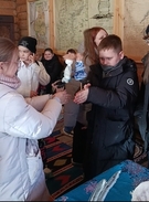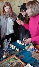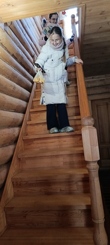 Поразила учеников высокая лестница, которая вела на второй этаж, где расположена «светелка». Раньше девушки занимались там шитьем, сейчас там находится выставка работ Ульяновой Людмилы Эрендженовны, которая занимается вышиванием. В ее коллекции более 900 работ, среди которых есть тематические «Конек-Горбунок» к 190-летию сказки и к 225-летию А.С. Пушкина вышитые сказки и стихи.
