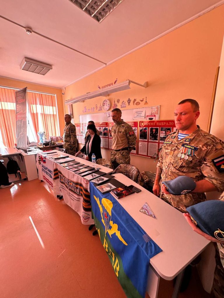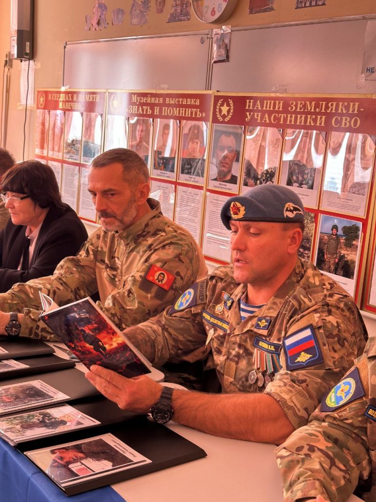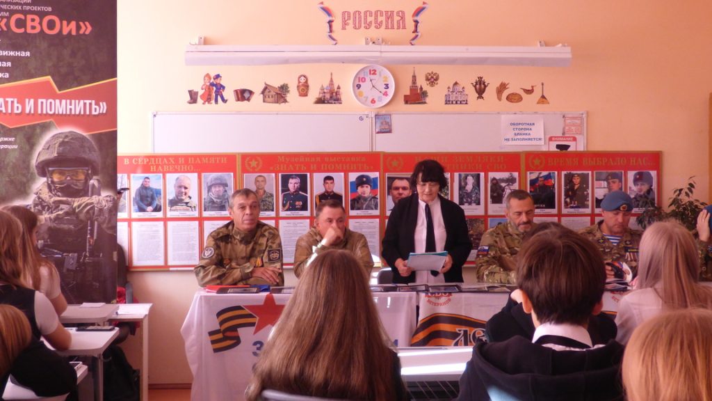 14 сентября 2025 года в нашей школе прошел Урок мужества для учеников 10а класса.В начале встречи, директор центра реализации патриотических проектов и программ «СВОи», руководитель проекта музейной выставки » Знать и помнить», посвящённой погибшим участникам СВО, Татьяна Набойщикова объяснила учащимся важность встречи с ветеранами боевых действий, участниками СВО и обозначила главную цель патриотической встречи, что наши герои живут рядом.