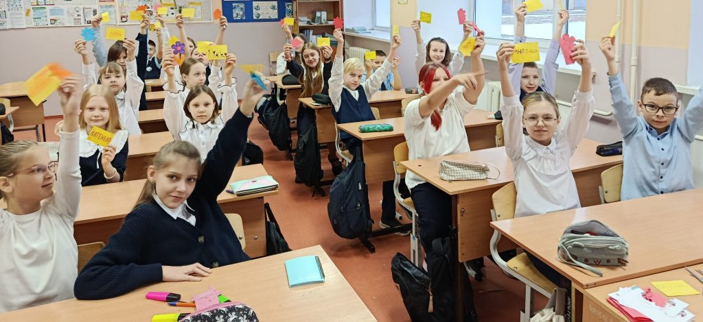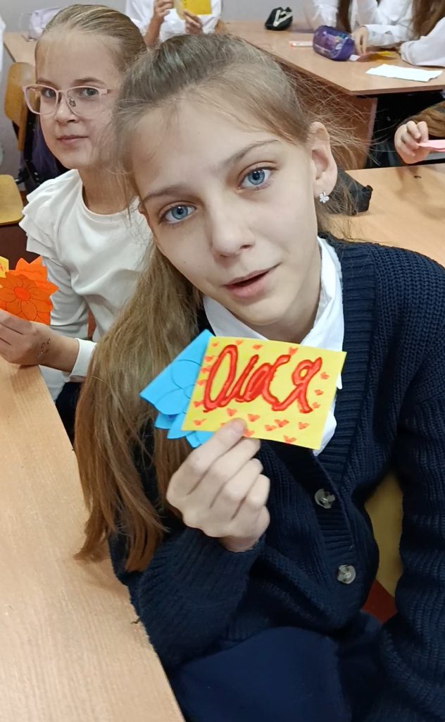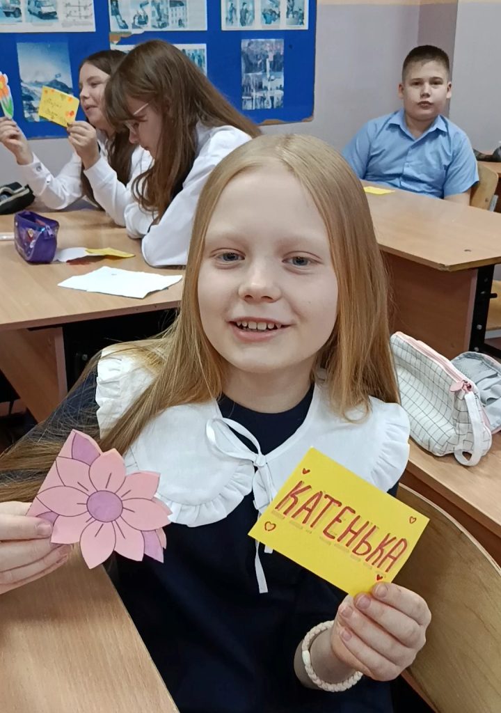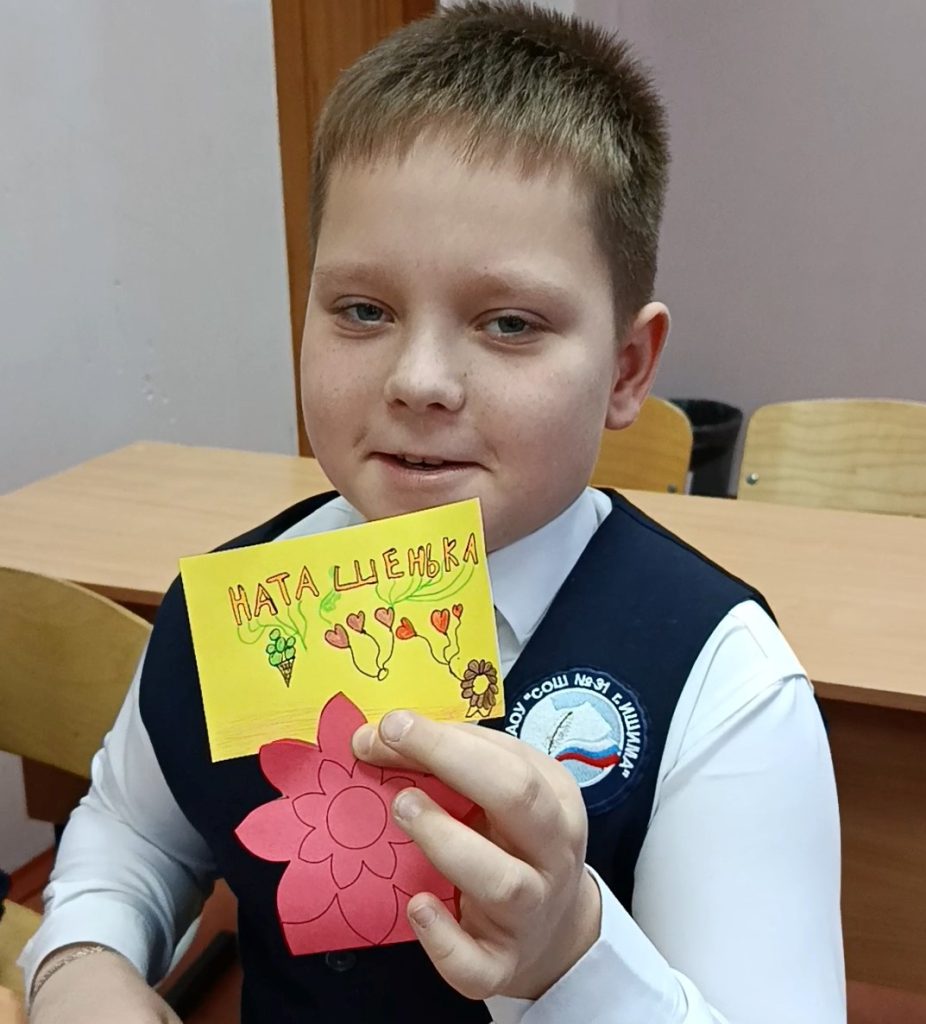 Было очень приятно слушать эти разговоры. А сколько радости в глазах было у детей, когда они писали имя самого дорого в жизни человека, а потом в открытке написали пожелания. В итоге мы сняли видеопоздравление от всего класса, которое получат родители уже в это воскресенье.