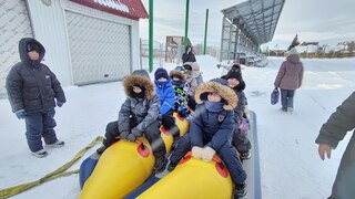 Прекрасная погода прибавляла задора и веселья!! После катания на горке, прошли весёлые старты, ярким завершением стало катание на банане.