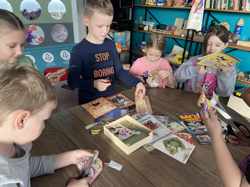 На осенних каникулах ребята 1Б класса посетили ишимский Экодом. Первоклассники узнали много интересного о второй жизни отходов, которые мы обычно выбрасываем. Попробовали сами переработать пластиковые крышки с помощью обычного велосипеда. Поучаствовали в мастер-классе по изготовлению брелочков и закладок из бросовой бумаги и пленки. В конце занятия приняли решение стать активными посетителями Экодома!