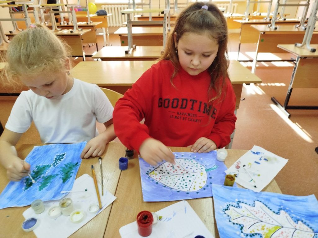27 октября во 2Г классе прошла творческая мастерская по рисованию ватными палочками. Дети рисовали осенние листочки, зелёные ёлочки. Рисунки получились яркими и красочными.