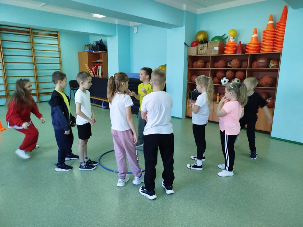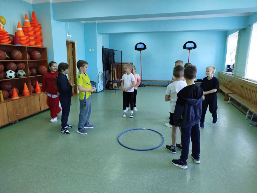 После рисования ребята отправились в спортивный зал, где вместе с учащимися 2А класса поиграли в спортивные эстафеты. Команды обоих классов вложили все свои силы, умения, выносливость, сообразительность, организованность и взаимовыручку. После весёлых эстафет поиграли в игру «Третий лишний».