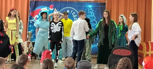 Ученики 4-5 классов нашей школы стали зрителями новогоднего театрализованного представления «Тайна сказочного сундука», которое позволило им стать участниками захватывающих приключений, волшебных превращений, побывать в атмосфере дружбы и радости. С помощью волшебного сундучка «Музея сказки» обычные подростки Василиса и Иван попадают к героям русских сказок — в подводное царство, к Кощею, лежебоке-Емеле. С ними происходят различные чудеса и приключения, но чтобы вернуться домой, им нужно найти Деда Мороза.