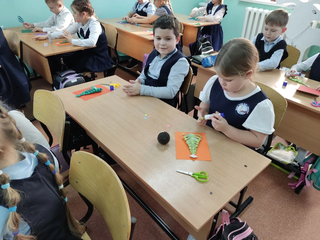 Ребята 4 -х классов завершили трек «Орлёнок-мастер»: дети отвечали на вопросы, из чего складывается образ мастера, что нужно знать и уметь, чтобы быть мастером. Подводя итоги трека, был использован игровой прием «Осьминожки»: ребята просмотрели советский мультфильм с таким названием, обсудили, зачем осьминожки меняли цвета, а затем, выбрав цвет своих эмоций, сделали поделки и аппликации в виде осьминожки, разместили своих разноцветных осьминожек на доске и проанализировали свою работу в течение трека. Ребята познакомились с одним из русских народных глиняных художественных промыслов — Дымковская игрушка. Вылепили лошадку.