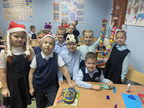 При поддержке своих классных руководителей и ребят-наставников первоклассники стали активными участниками Новогодних мастерских, где дети узнали историю возникновения ёлочных игрушек и празднование Нового года, отгадывали загадки, пели новогодние песни, читали стихи и сказки, создавали рисунки, поделки, сувениры для родных и друзей. А также создавали новогодние открытки для военнослужащих, находящихся в зоне специальной военной операции. При встрече с Дедом Морозом и Снегурочкой узнали, как отпраздновать этот день без вреда для природы. Совершили путешествие в музей П.П.Ершова в гости к мастерам, где научились раскрашивать деревянный значок.