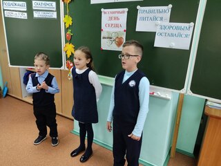 В 4 А классе прошел классный час, посвященный дню сердца. Ребята говорили о важности витаминов для организма , поиграли в игры «Назови овощи и фрукты по их цвету», «Да-нет» (что полезно, а что вредно), а также назвали и обсудили основные составляющие здоровья: правильное питание, спорт и физкультура, здоровый отдых.