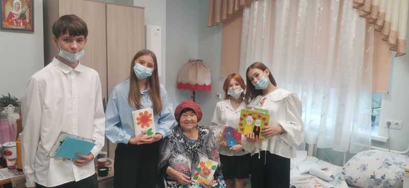 золотую осеннюю пору мы чествуем тех, кого мы уважаем и любим. Ежегодно накануне праздника ученики 8а, 8г и 9а классов с подарками и открытками посещают геронтологический центр г. Ишима. Поддержать, оказать реальную помощь, сказать теплые слова благодарности каждому пенсионеру, подарить открытку, сделанную руками учеников младших классов. Но и это лишь небольшая частичка нашего неоплатного долга перед людьми старшего поколения. Большое складывается из мелочей. Уступить место в автобусе, помочь перейти через дорогу, выразить простое человеческое внимание – и разглаживаются морщинки у глаз, светлее становится взгляд, теплее на сердце пожилого человека.