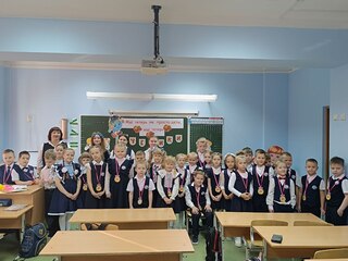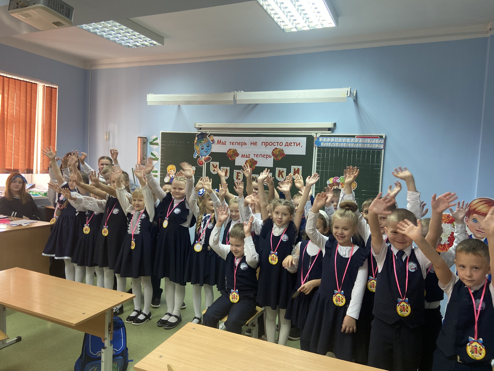 В последний день первой четверти ученики 1 б класса стали участниками таинства Посвящения в Первоклассники. К ним в гости пришли их наставники — ученицы 5б класса с заданиями и конкурсами. Ребята с честью прошли все испытания и дали клятву Первоклассников! С хорошим настроением ученики отправились на первые в их жизни каникулы!