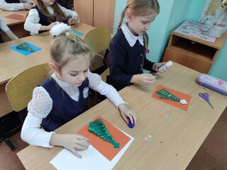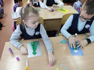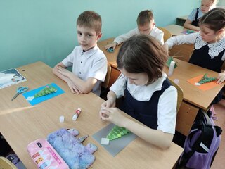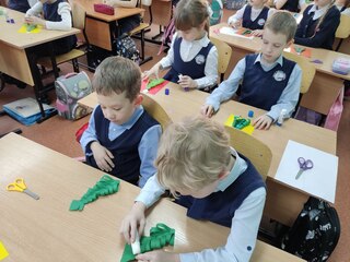 Ребята 1 «Г» класса — участники программы «Орлята России» активно проходят трек «Орлёнок – мастер». В декабре открылась мастерская Деда Мороза. Во время дистанционного обучения прошёл мастер класс по изготовлению новогодней ёлочной игрушки «Снегирь», а ещё ребята выполнили аппликацию из ватных дисков «Снеговик». Все работы ребята принесли в класс, а вместе с ними и новогоднее настроение. На этой неделе на занятии «Класс мастеров» ребята отгадывали загадки, связанные с новогодним праздником, и выполнили работу «Новогодняя ёлочка».