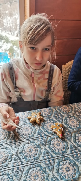 Ребята 4 А класса побывали в гостях у Дедушки Мороза, но не сразу им удалось попасть в терем волшебника, а пришлось сначала пройти полосу препятствий от Бабок Ежек. Ребята ловко преодолели все трудности, и зайчик-побегайчик проводил до теремка, в котором нас ждали Дед Мороз и Снегурочка. Дети поиграли, потанцевали, приняли участие в мастер-классе по украшению глазурью и разноцветной посыпкой имбирных пряников, и, конечно же, чаепитие с вкусными собственноручно украшенными сладостями. А напоследок веселое катание с горки.