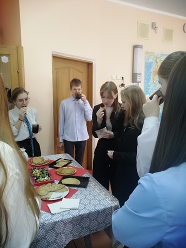 Масленица – это один из самых веселых народных мероприятий, которое завершает зимнюю череду праздников и предвещает о начале весны! Вот и учащиеся 10Б класса решили присоединиться к проводам зимы. Четверг – «Разгуляй» встретил ребят интересными фактами о Масленице, поговорками, пословицами и загадками, ну и главным атрибутом –вкусными блинами .