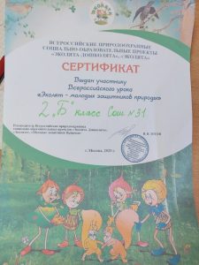 Во 2 «Б» классе прошёл Всероссийский урок «Эколята -молодые защитники Природы»