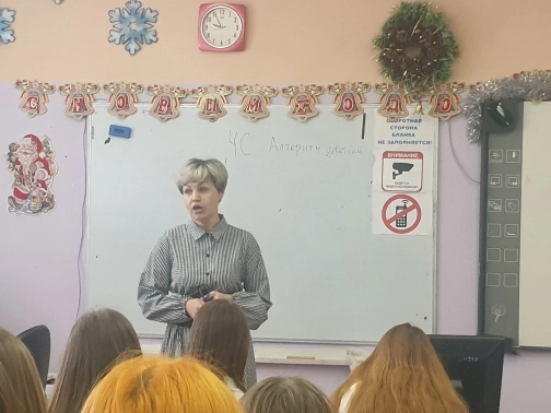 Каждую неделю на базе нашей школы проходят встречи школьников с инспектором по охране детства Натальей Валерьевной Шейбиной. Специалист АУ ИГ «ЦСОН «Забота»» проводит мероприятия с подростками различного формата: от информационно- разъяснительной беседы до дискуссии. Во внимание берутся такие основные тематические направления: развитие навыков жизнестойкости, освоение приемов саморегуляции, совершенствование навыков общения, конструктивного разрешения конфликтной ситуации, формирование законопослушного поведения, осознанного отказа от употребления психоактивных веществ. Шейбина Н.В. дискутирует со школьниками по вопросам семейного счастья, в чем оно заключается, о половой неприкосновенности несовершеннолетних. Познакомились и с содержанием статей 131-135 УК РФ.