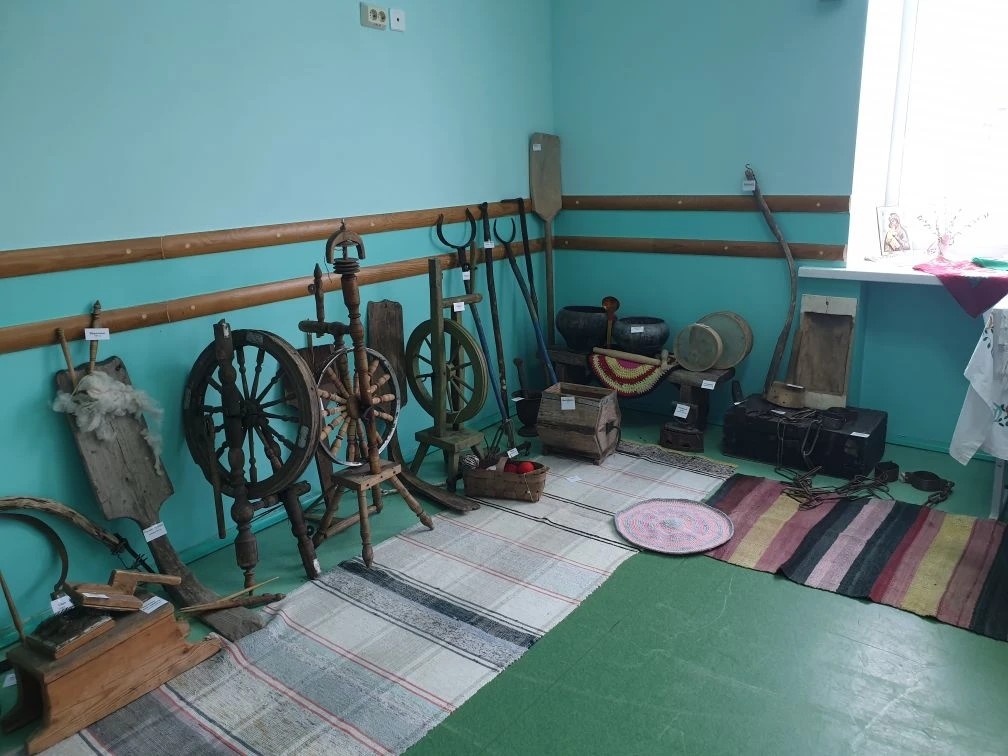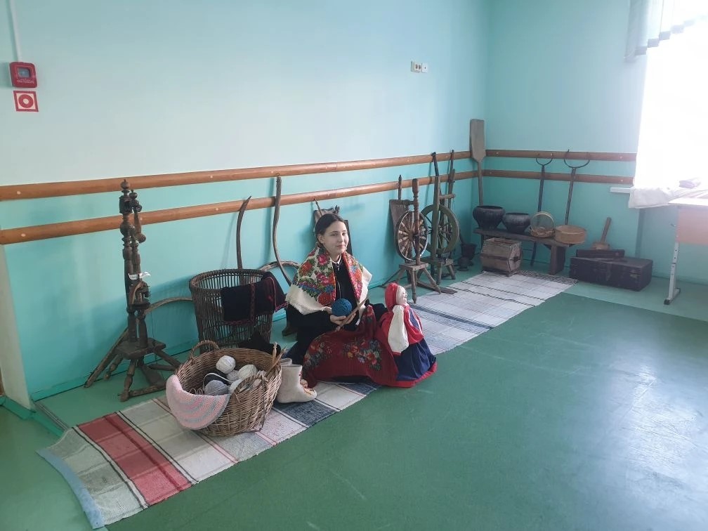 На этой неделе в основном здании школы ребятам была представлена экспозиция «Русская деревенская изба конца XVIII – начала XX вв.». Выставка оформлена в виде пространства русской избы, четко поделенной на основные части: сакральный красный угол, бабий кут и коник. Интерьер пространства насыщен старинными экспонатами, которыми пользовались наши предки. Среди декоративных экспонатов- настоящие произведения искусства: Брокаровская вышивка, вышивка гладью, подзоры, рушники, текстильные изделия, выполненные русскими мастерицами в технике ришелье, национальные шерстяные платки и шали. Ребята с интересом рассматривали орудия труда, бытовую, кухонную утварь, которой пользовались в повседневности прабабушки: инструменты для работы с русской печью, шерстью, орудия жатвы. Внимание школьников привлекла маслобойка, трепалка, безмен, уровень, ступка, механическая прялка киянка, угольный утюги и металлические кандалы, которые активно применялись для отправки ссыльных по Московскому тракту и другое.